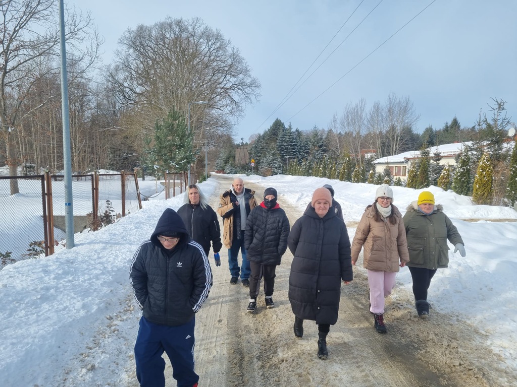 Zimowy spacer ze znajomymi. Skrzypiący pod stopami śnieg, mroźne, świeże powietrze i policzki zaróżowione od chłodu dodają energii i poprawiają nastrój. To doskonały czas na rozmowy, podziwianie białych krajobrazów i cieszenie się spokojem zimowej przyrody. ❄️