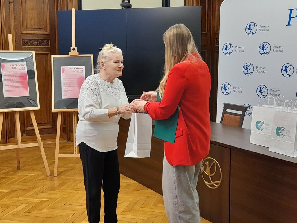 W sali konferencyjnej w Starostwie Powiatowym w Słupsku panowała wyjątkowa, podniosła atmosfera. Tego dnia zgromadzili się tam ludzie o wielkich sercach i niezwykłej wrażliwości – twórcze osoby, które poprzez słowo i sztukę potrafią dzielić się emocjami, nadzieją i pięknem codzienności. Wśród nagrodzonych znalazła się także nasza mieszkanka DPS w Lubuczewie Pani Dorota – osoba pełna ciepła, talentu i wewnętrznej siły. Jej wiersz poruszył jury swoją szczerością, głębią przeżyć i autentycznością. Każde słowo było jak delikatny most łączący doświadczenie z marzeniami, a skromność autorki tylko podkreślała wielkość jej talentu. Moment wręczenia nagrody był niezwykle wzruszający. Przy dźwiękach uznania i serdecznych gratulacji wybrzmiały słowa podziwu dla wszystkich twórców, którzy udowadniają, że pasja nie zna wieku ani granic. Uśmiechy, wspólne rozmowy i ciepłe spojrzenia stworzyły atmosferę jedności i dumy. To spotkanie było pięknym dowodem na to, że twórczość ma moc budowania wspólnoty, wzmacniania ducha i dawania radości – zarówno autorom, jak i odbiorcom. Gratulujemy wszystkim nagrodzonym, a szczególnie naszej utalentowanej mieszkance DPS w Lubuczewie. Jesteśmy ogromnie dumni, że możemy być świadkami tak wspaniałych chwil!
