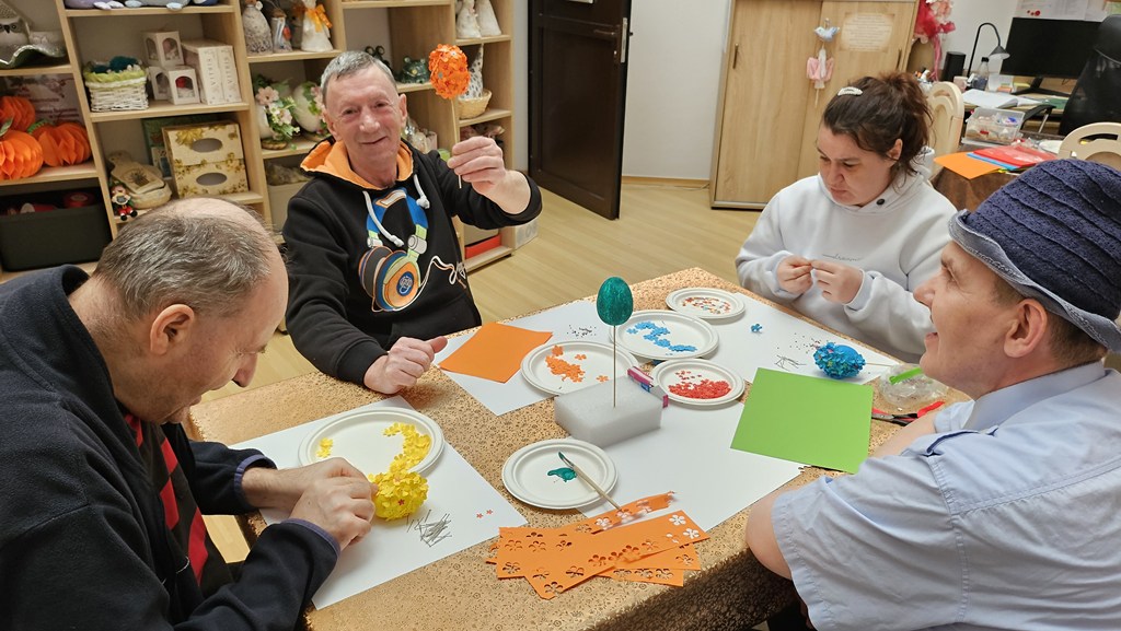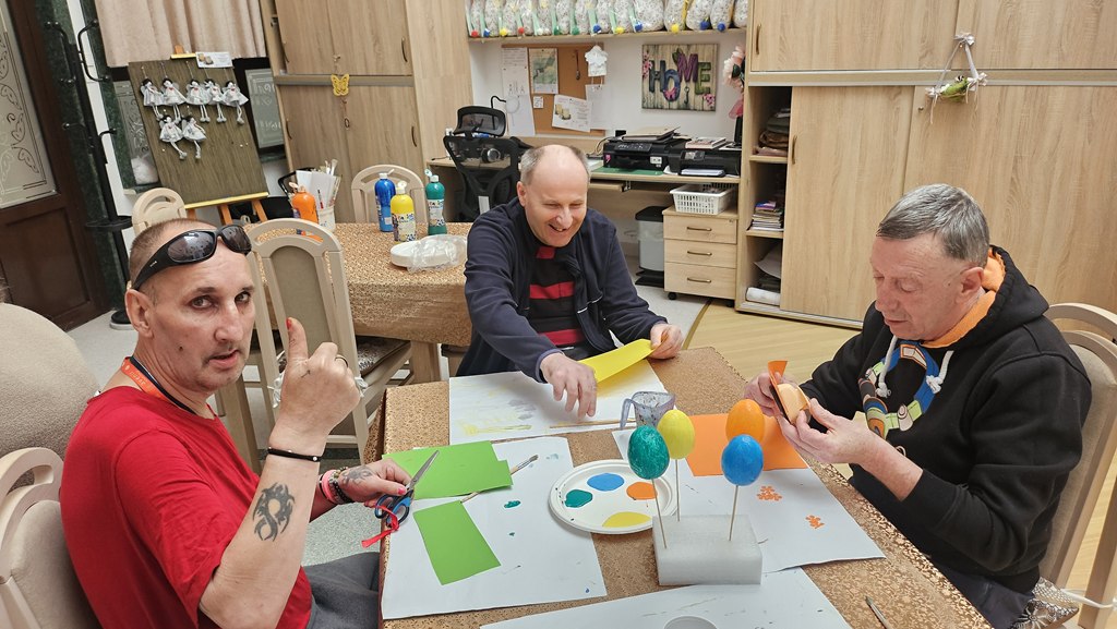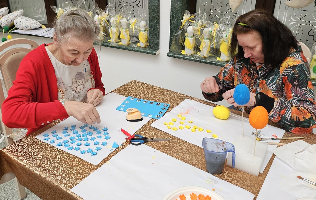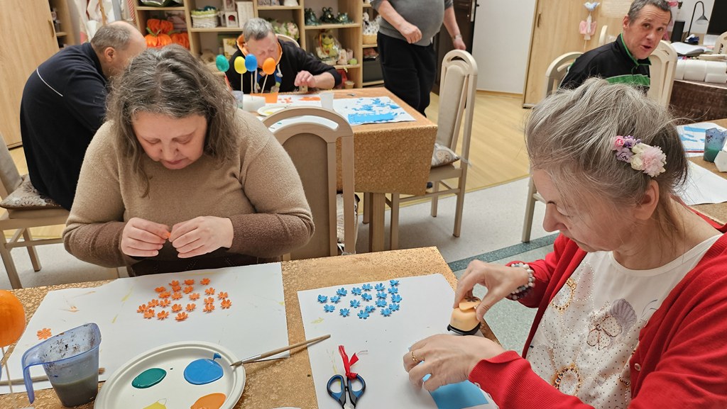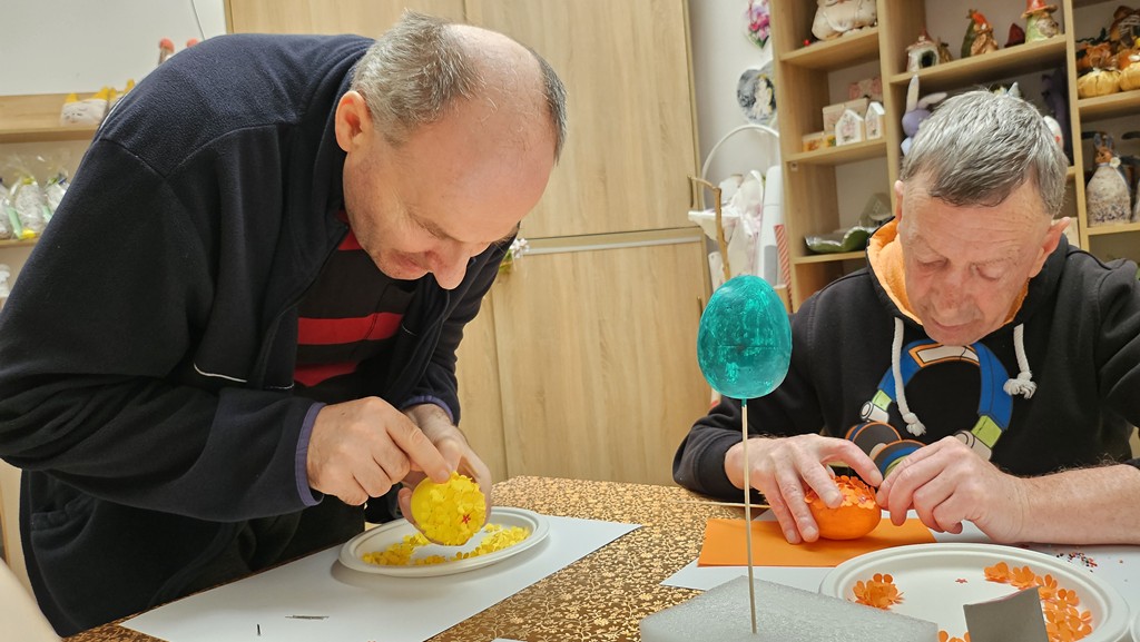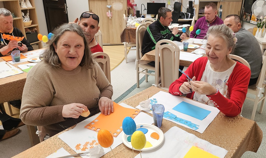 Przygotowania do świąt w naszej sali terapii zajęciowej idą pełną parą. Dziś tworzyliśmy kolorowe jajka wielkanocne – praca była czasochłonna, wymagała cierpliwości i dokładności, ale efekty wynagrodziły wysiłek! Każde jajko jest wyjątkowe i pełne wiosennych barw. Każda ozdoba to małe dzieło sztuki, pełne wiosennych kolorów i zaangażowania. Dziękujemy za wspólnie spędzony, twórczy czas!
