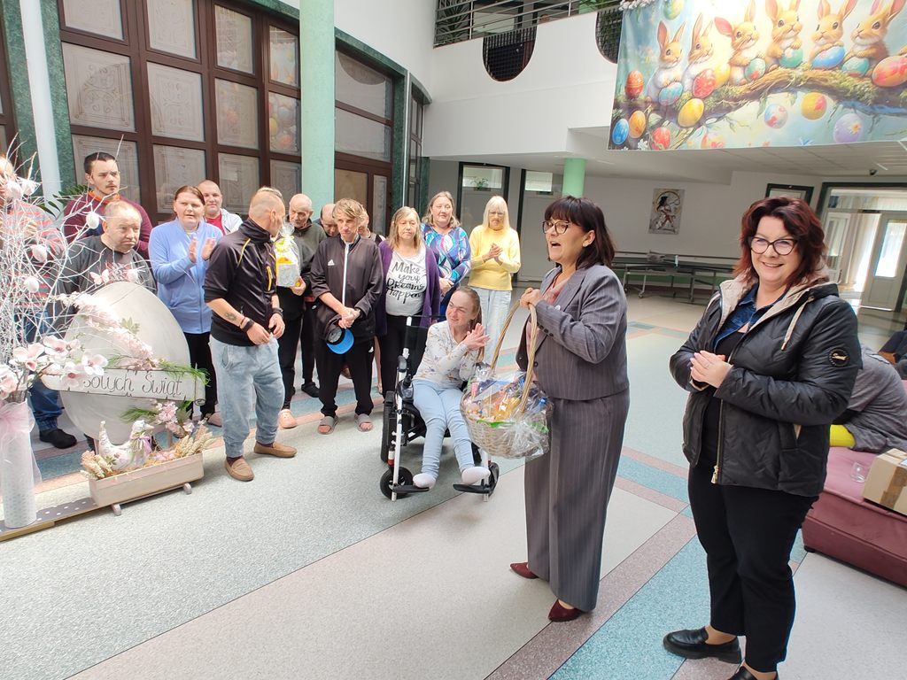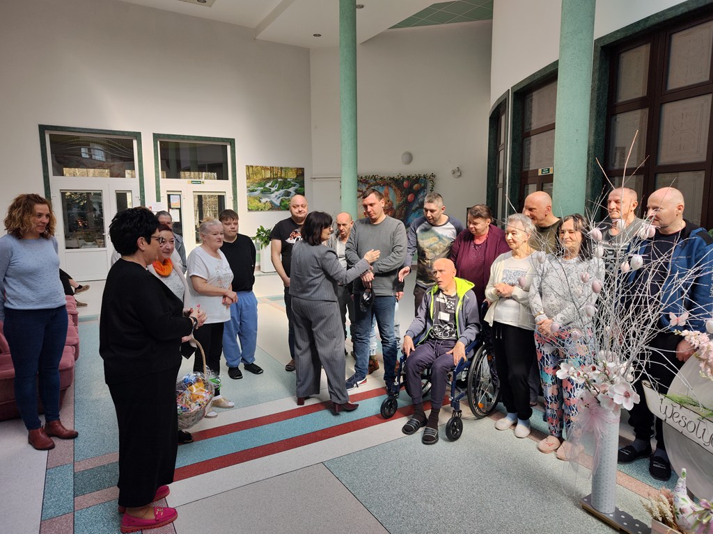 W przedświątecznej atmosferze odwiedziła nas Pani Wójt - Barbara Dukier, przynosząc ze sobą nie tylko serdeczne życzenia, ale i symbolicznego „zajączka”, który wywołał wiele uśmiechów. To spotkanie było pełne ciepła, wzruszeń i radości. W oczach naszych mieszkańców pojawiło się prawdziwe wzruszenie, a serdeczne rozmowy i chwile spędzone razem na długo pozostaną w naszej pamięci. Takie wizyty przypominają, jak ważna jest bliskość, życzliwość i pamięć o drugim człowieku. Dziękujemy za ten piękny gest i wspólnie spędzony czas!