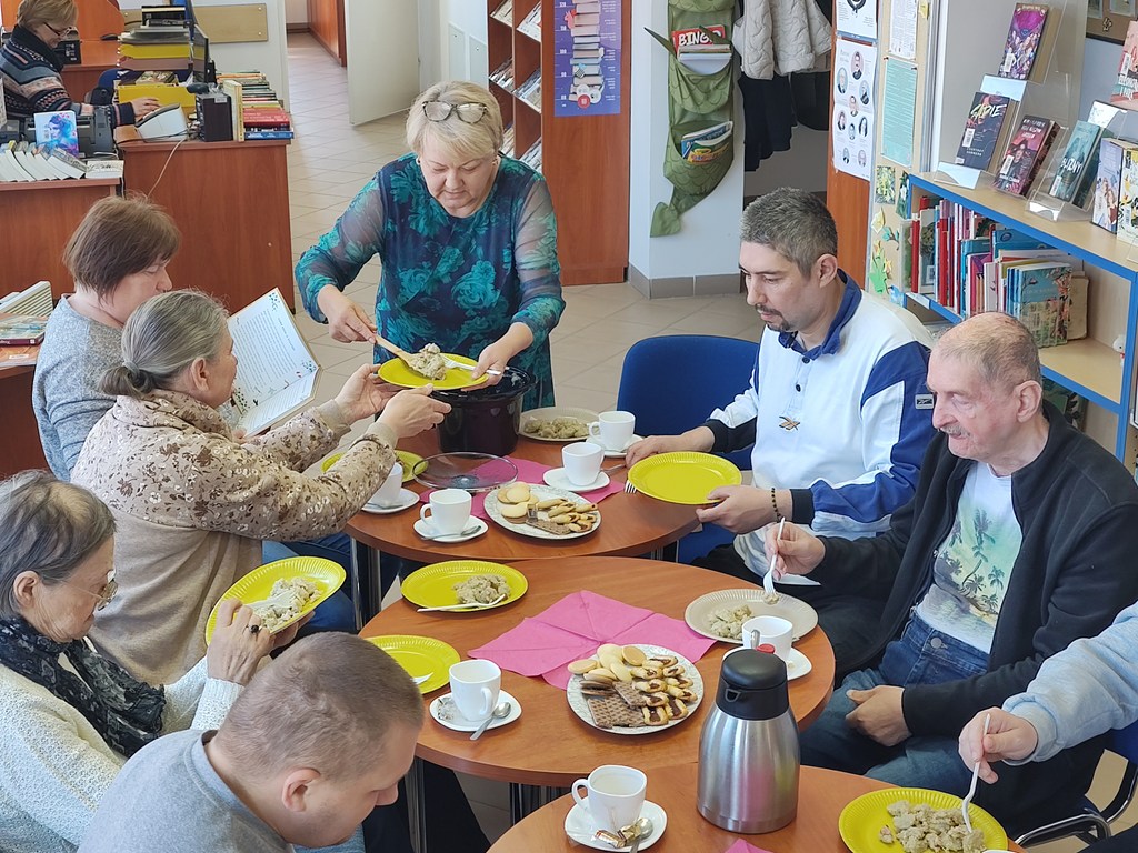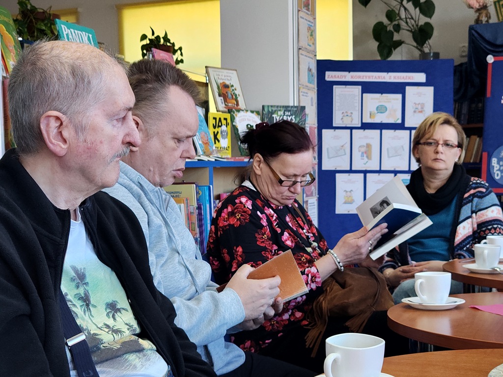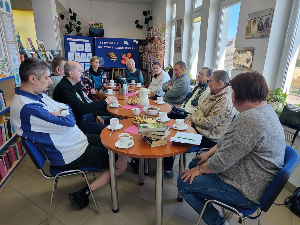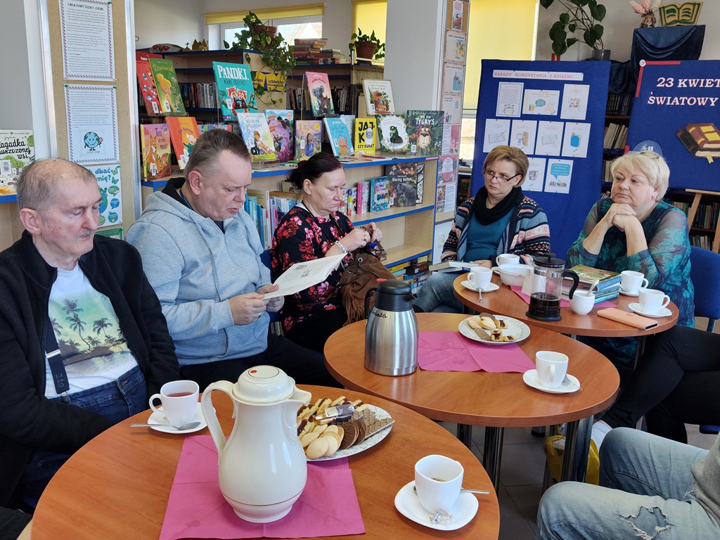 Od ładnych kilku lat każdego miesiąca w życiu naszego Domu jest taki dzień, kiedy jedziemy do Biblioteki w Objeździe, by uczestniczyć w spotkaniach Dyskusyjnego Klubu Książki. I choć tych spotkań były już dziesiątki, to każde jest inne, niepowtarzalne i każde jest wyjątkowe. Nie inaczej było w dniu dzisiejszym. Tematem przewodnim była literatura kaszubska, a wśród niej twórczość Anny Łajming. Pani Jola, dzisiejsza prowadząca, zaznajomiła nas z postacią autorki, oprowadzając też pokrótce po jej publikacjach. Ale mało tego! Swoistą „wisienką na torcie” spotkania była degustacja typowo kaszubskiej potrawy, jaką są „golce” –uwierzcie nam, taaakie pyszneee! Pani Jolu, połaskotałaś nas dziś po podniebieniach i po serduchach! Dziękujemy i prosimy o jeszcze, i o więcej!